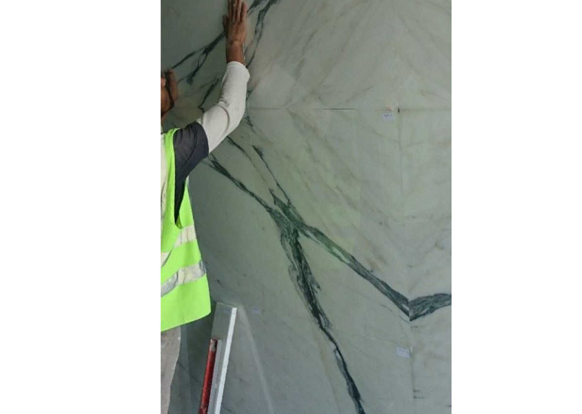 High‑quality finishing work featuring premium marble and tile installation, designed to enhance the villa’s modern aesthetic and deliver a refined, elegant interior look Installing Crema Marfil marble flooring using waterjet cutting. Crema Marfil marble is one of the finest Spanish marbles, characterized by its light beige color and minimal veining, making it a great choice for flooring and walls